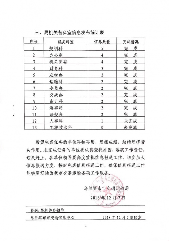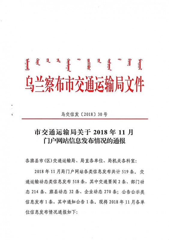 市交通運輸局關(guān)于2018年11月門戶網(wǎng)站信息發(fā)布情況的通報