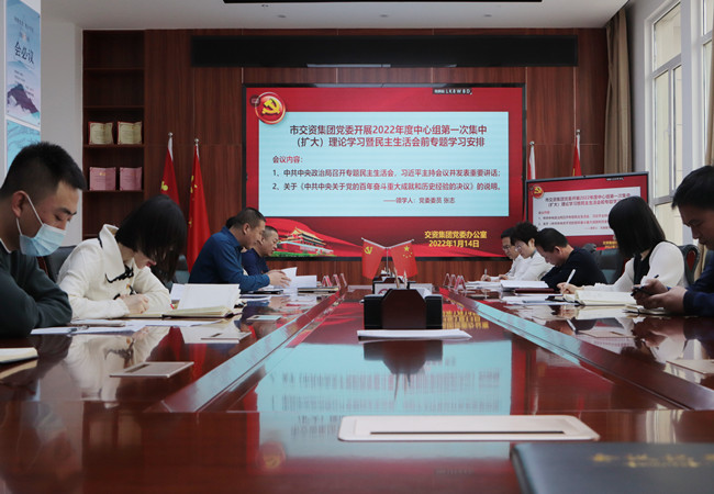1月14日上午,市交資集團進行了黨史學習教育專題民主生活會會前集中學習研討暨2022年度中心組第一次集中(擴大)理論學習,會議集體學習了習近平總書記在中央政治局黨史學習教育專題民主生活會上的重要講話精神,學習了關于《中共中央關于黨的百年奮斗重大成就和歷史經(jīng)驗的決議》的說明。集團公司黨委委員、常務副總經(jīng)理主持會議并講話,集團黨委黨委班子、領導班子、機關支部全體黨員、集團各部室負責人(正副職)、各子公司負責人參加會議,班子成員結合學習內(nèi)容進行了研討交流。