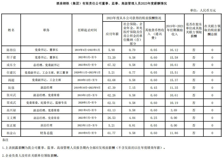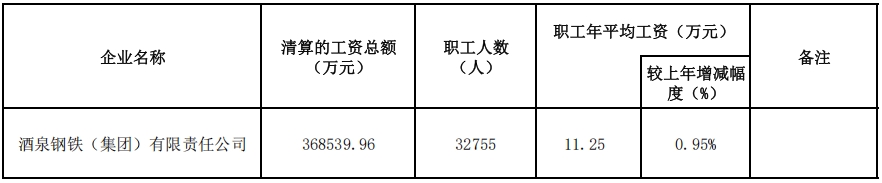 酒泉鋼鐵(集團)有限責任公司2023年工資分配信息披露